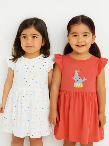 Nautinati Girls Printed Cotton Dress|Pack of 2| Age 3 - 24 Months