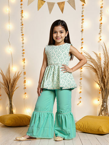 Nautinati Girls' Cotton Festive Printed Top and Sharara Set | Age 2 - 10 Years