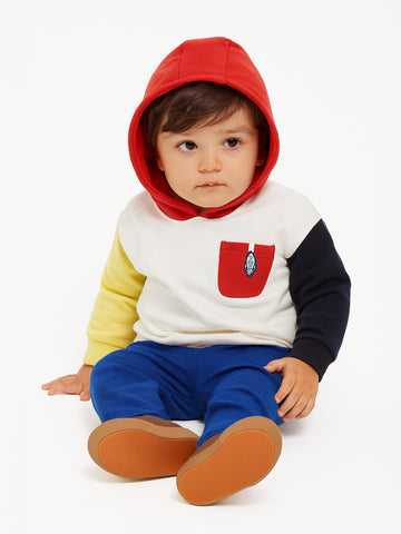 This yellow sweatshirt is perfect for your little boy who loves to play outside, even when it's chilly. This hooded pullover sweatshirt with a fun graphic applique is perfect for keeping your active little explorer warm and comfy during chilly adventures. It's versatile too – pair it with jeans and sneakers for casual fun, or dress it up with khakis!