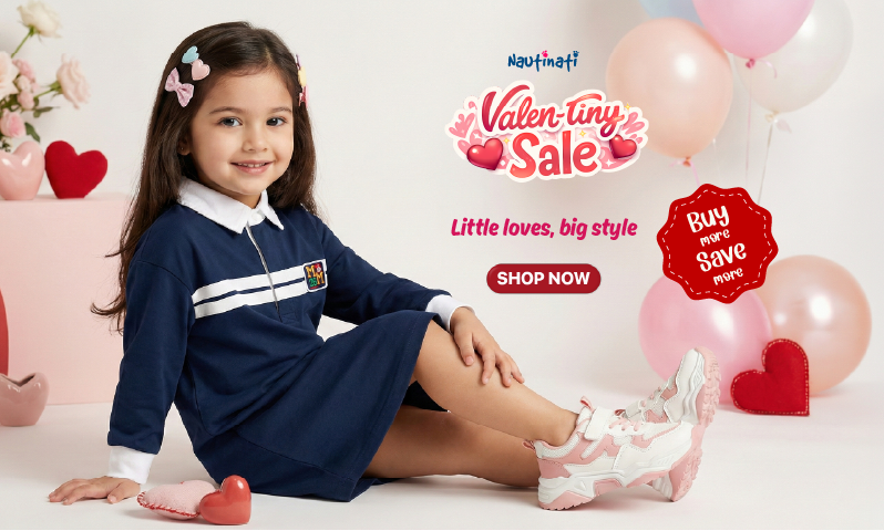Nautinati Girls White Pink Printed A-Line Dress With Ruffle Detail