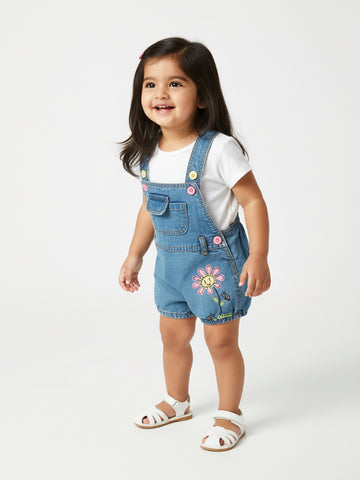 Nauti Nati Infant Girls Embroidered Pure Cotton Denim Dungaree