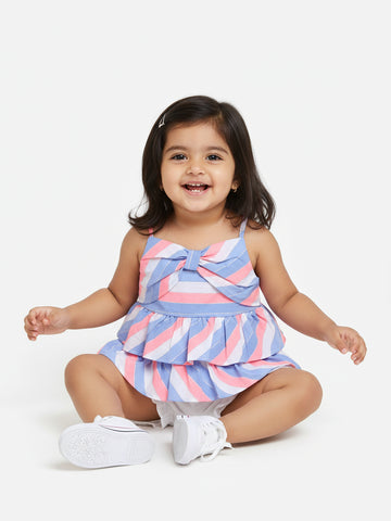 Nautinati Girls Pink Blue Dyed Ruffled A-Line Dress
