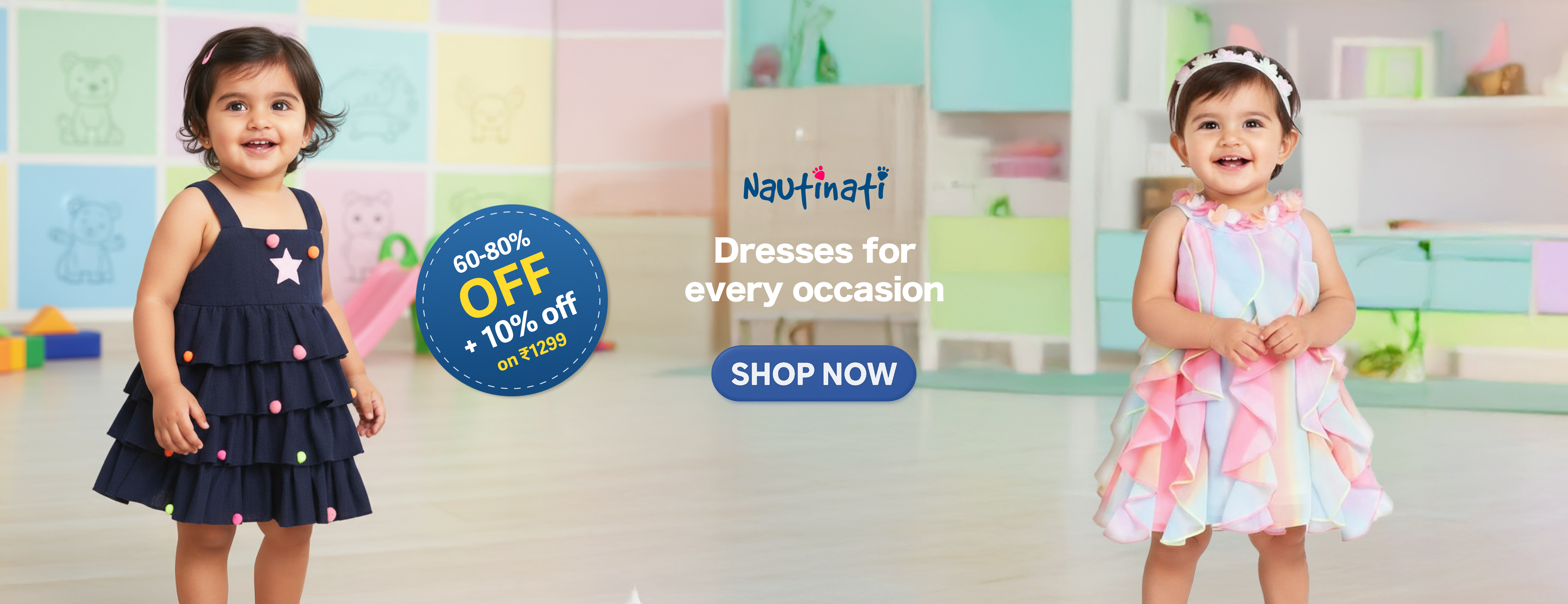 Nauti Nati Girls Layered Pure Cotton Fit Flare Dress