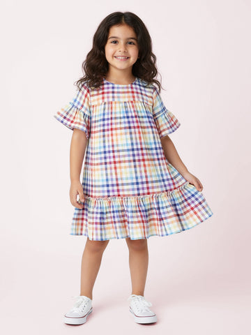 Nautinati Girls Cotton Gingham Top|Flared Sleeves| Age 2 - 10 Years