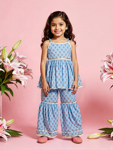 Nautinati Girls' Cotton Festive Printed Top and Sharara Set | Age 2 - 10 Years