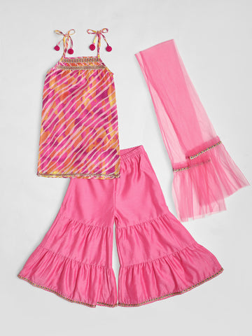 Nauti Nati Girls Leheriya Printed Shoulder Straps Gotta Patti Kurti with Sharara Dupatta