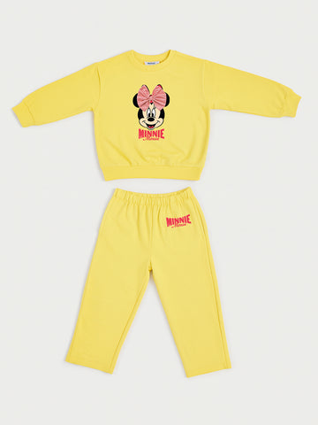 Nautinati Yellow Minnie Mouse Print Sweatshirt Set for Girls