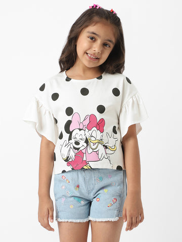 Nautinati Disney Girls Cotton Minnie Mouse & Daisy Polka Printed Flare Sleeves Top