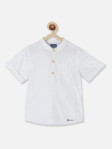 Nautinati Boys Standard Polka Dots Printed Band Collar Pure Cotton Casual Shirt