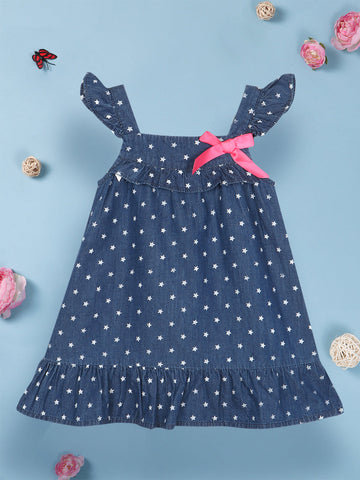 Nautinati Girls Polka Dot Printed Gathered Square Neck A-Line Dress