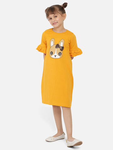 Nautinati Girls Graphic Printed Sequined Bell Sleeves Pure Cotton T-Shirt Dress