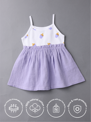 Nautinati Girls' Soft Cotton Strap Sleeves Gathered Waistline Dress