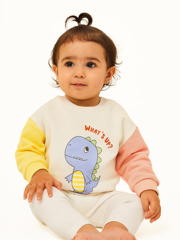 Nautinati Fleece Dinosaur Print Full Sleeve Sweatshirt for Infants Newborn Baby Boys